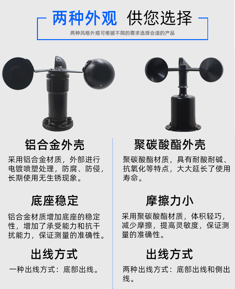 結構:工程碳纖維材質,旋轉三風杯式結構,內置單束激光發(fā)射管,測量靈敏度更高